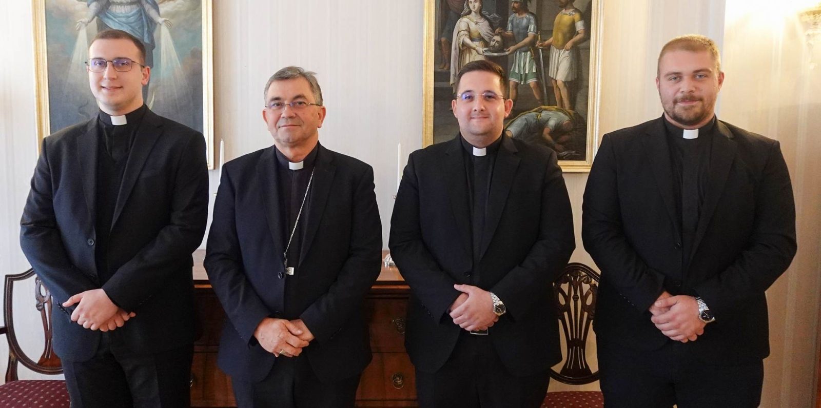 Požeški biskup Ivo Martinović susreo se 3. listopada 2025. u Biskupskom domu u Požegi s trojicom nedavno zaređenih đakona Požeške biskupije
