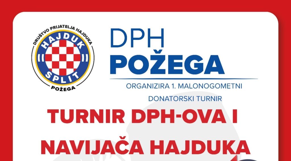 Udruga Društvo prijatelji Hajduka Požega organizira prvi Malonogometni donatorski turnir pod nazivom »Turnir DPH–ova i navijača Hajduka«. Natjecateljski, ali, prema riječima organizatora, više prijateljski turnir održat će se na požeškomu Sportsko – rekreacijskom centru u subotu, 6. rujna 2025. godine od 10 sati.