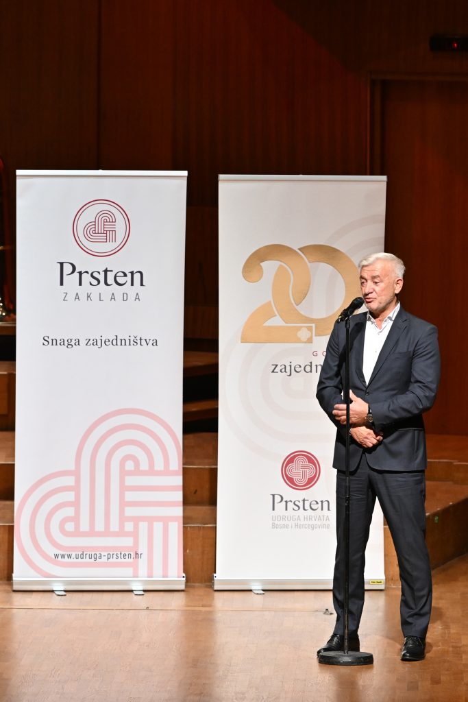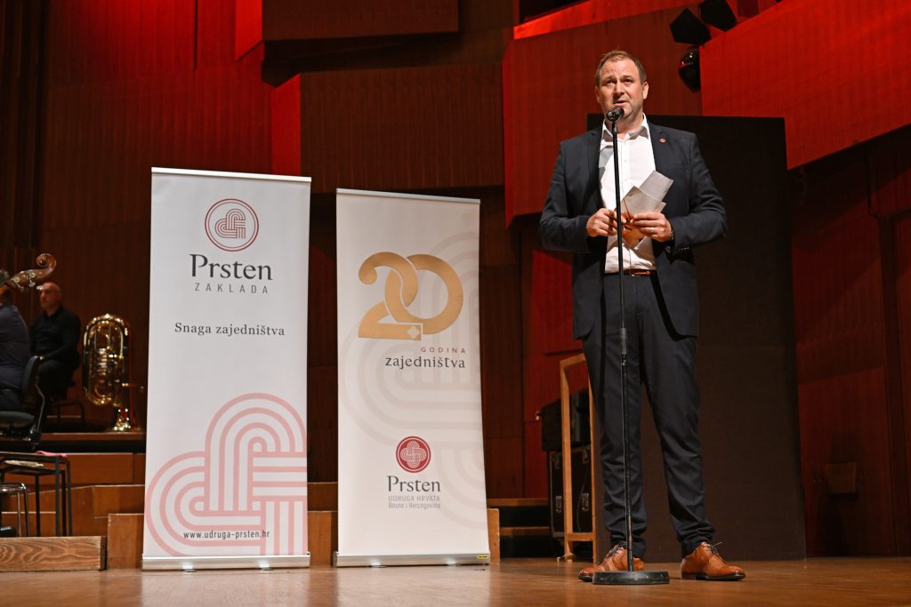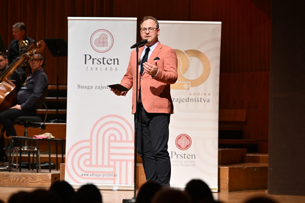 Izrazio je uvjerenje da će današnji studenti kojima pomažemo sutra postati nositelji promjena pružajući ruku drugima, što se u Prstenu već i čini: “To je upravo i srž djelovanja naše Zaklade Prsten u kojoj su nekadašnji stipendisti danas zakladnici koji podržavaju nove generacije. Zar to nije pravi Božji blagoslov i dokaz snage zajedništva? Vašom nazočnošću na ovom koncertu zajedno gradimo svjetliju budućnost!“
