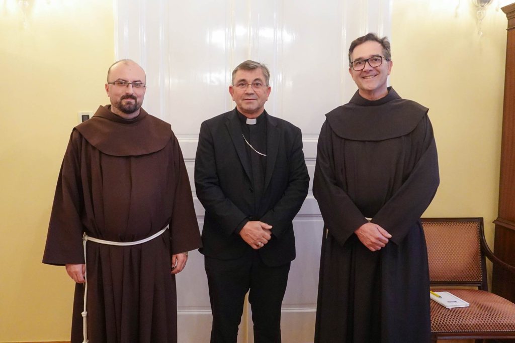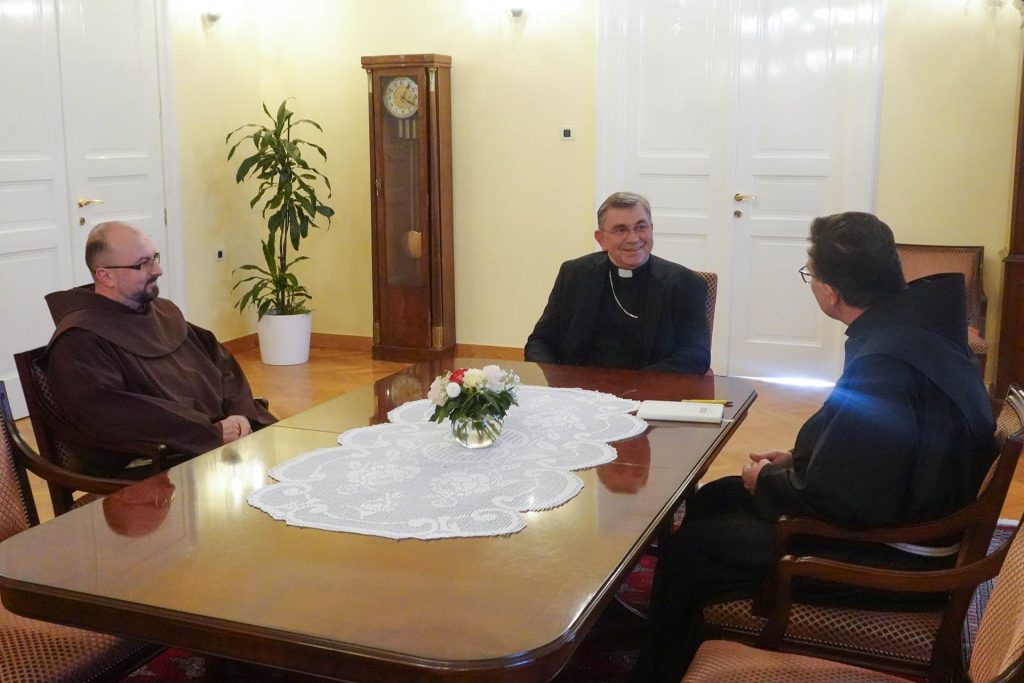 Biskup Martinović je u razgovoru upoznao generalnog vizitatora s djelovanjem Požeške biskupije te pastoralnim radom svećenika Hrvatske franjevačke provincije sv. Ćirila i Metoda u četiri njezine župe, zahvalivši za sve što u duhu franjevačke karizme nastoje činiti za vjernike ove mjesne Crkve. Potom je konkretno progovorio o djelovanju braće u Župi i samostanu sv. Antuna Padovanskog u Našicama, Župi i samostanu sv. Roka u Virovitici, Župi i samostanu Duha Svetoga u Požegi te Župi i samostanu sv. Petra Apostola u Cerniku. Biskup je, među ostalim, istaknuo važnost Susreta hrvatske katoličke mladeži koji će se održati iduće 2026. godine u Požeškoj biskupiji 2. i 3. svibnja. Govorili su i izmijenili iskustva o životu i djelovanju Crkve u Hrvatskoj i Sloveniji te izazovima s kojima se susreću.