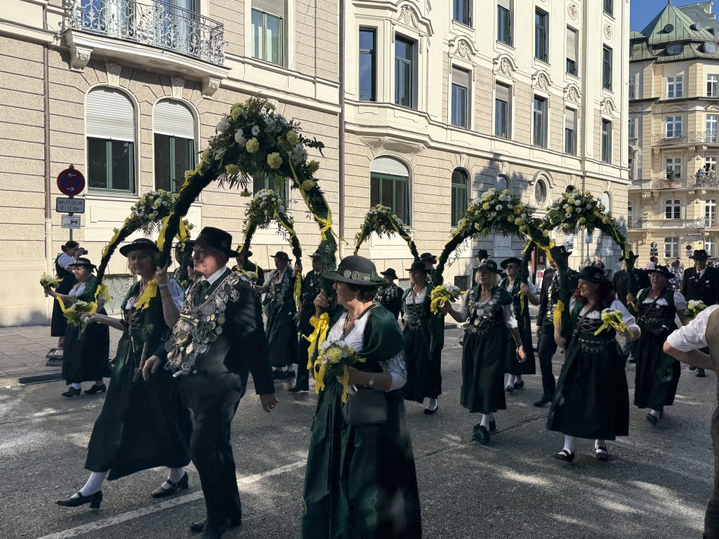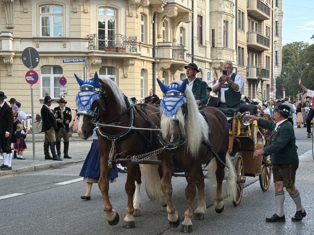 Na tradicionalnoj povorci Oktoberfesta, poznatoj kao Trachten- und Schützenzug, sudjeluje više od 9.000 sudionika iz Njemačke i inozemstva, a ulicama Münchena sudionici povorke obučeni su u raznolike narodne nošnje. Među sudionicima bili su gosti iz Austrije, Italije, Hrvatske i drugih zemalja. Povorka je duga sedam kilometara, a prikazuje bogatstvo običaja, glazbe i plesova te je vrhunac proslave koja seže još od 1835. godine.