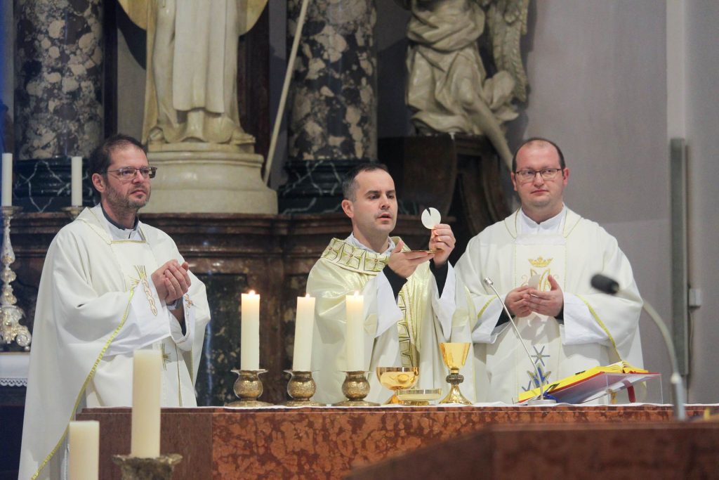 Središnji dio hodočašća bila je sveta misa koju je u Katedrali predvodio predstojnik Katehetskog ureda Požeške biskupije Marijan Pavelić. Prenoseći pozdrave požeškog biskupa Ive Martinovića koji je na Nacionalnom jubilejskom hodočašću u Rim, zahvalio je mladim pjevačima za služenje koje vrše svojim pjevanjem, osobito na svetim misama. Također im je zahvalio za žrtvu koju prinose vježbajući da bi što bolje mogli slaviti Boga u svetim slavljima. Podsjetio ih je da je papa Franjo bulom „Spes non confundit – Nada ne razočarava“ proglasio Redovni jubilej 2025. godine te im je poručio da su svojim dolaskom u Katedralu sv. Terezije Avilske koja je oprosna crkva i oni postali hodočasnici nade. Najavljujući svetkovinu zaštitnice Katedrale pozvao ih je da njezinu zagovoru preporuče sve ono što je važno kako bi rasli kao djeca Božja.