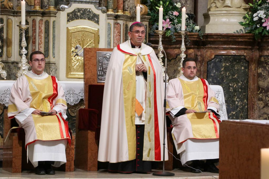 Prije Marijina hvalospjeva „Veliča duša moja Gospodina“ biskup Ivo je izložio na čašćenje relikviju sv. Terezije, a sva katedralna zvona oglasila su početak svetkovine u njezinu čast. Na svršetku Večernjih hvala biskup je pozvao sudionike na središnje slavlje svetkovine sv. Terezije, koje će sljedećeg dana predvoditi biskup Gorski u zajedništvu s biskupima Đakovačko-osječke crkvene pokrajine. Zamolio je sv. Tereziju neka prati svakoga od njih, da u njima pobjeđuje Isusova snaga, te je na sve zazvao Božji blagoslov.