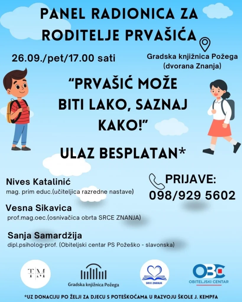 Ulaz na panel je besplatan, uz donaciju po želji za djecu s poteškoćama u razvoju OŠ J. Kempfa u Požegi.