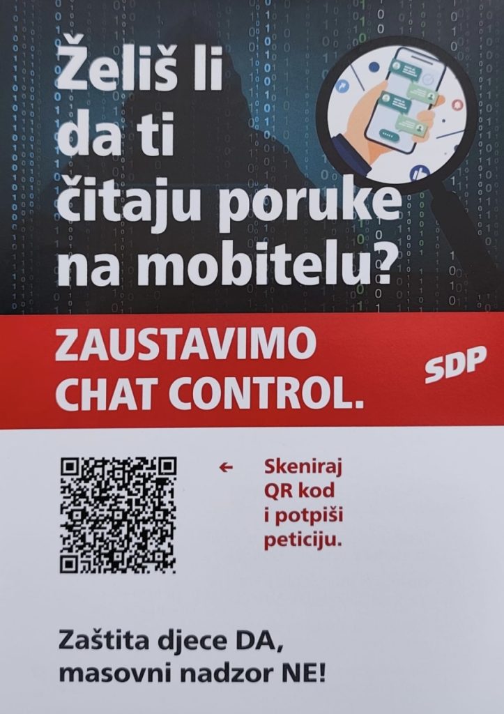 Dođite na naš štand, razgovarajte s nama, uzmite letak i potpišite peticiju SDP-a protiv „Chat Controla“.