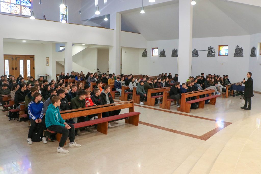 U uvodnom dijelu kateheze povjerenik Pavelić je mladima predstavio povijest Susreta hrvatske katoličke mladeži, podsjećajući da se ta velika duhovna okupljanja održavaju od 1996. godine te da su, kroz bogat niz susreta u različitim hrvatskim biskupijama, uvijek bila prigoda za snažnije zajedništvo, molitvu i svjedočenje vjere. Istaknuto je da je svaki Susret ostavio poseban trag u srcima sudionika, osobito zbog iskustava susreta s Kristom, ljepote hrvatske baštine i otvorenosti domaćina. Potom je govorio o značenju Križa SHKM-a, koji kao prepoznatljiv simbol prati pripremu svake biskupije domaćina. Naglasio je da Križ predstavlja poziv na nasljedovanje Krista te da njegovo putovanje dekanatima služi kao duhovna priprava, potičući molitvu i zajedništvo mladih.